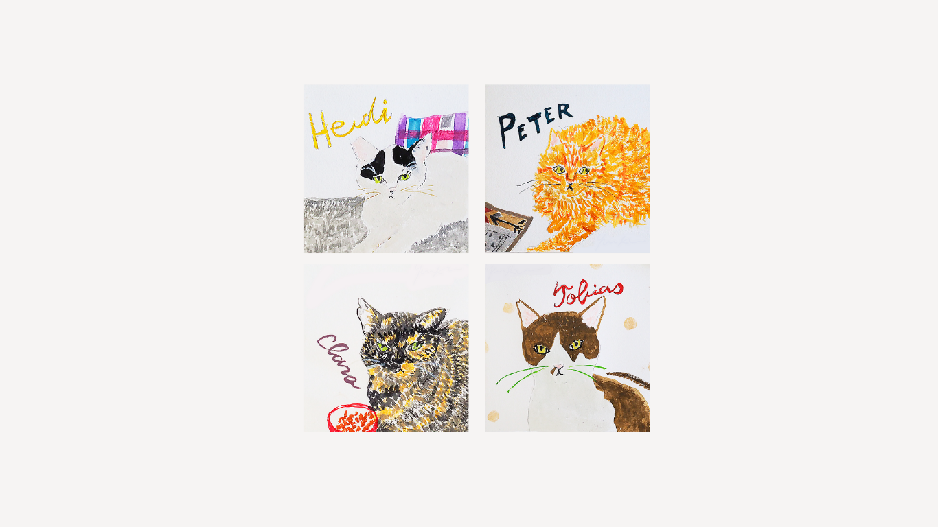 私はイラストを描き、猫たちは寝たり遊んだり、たまにドヤ顔でモデルを“務めて”くれています。グッズの売り上げは、そのまま保護猫たちの医療費やごはん代に。