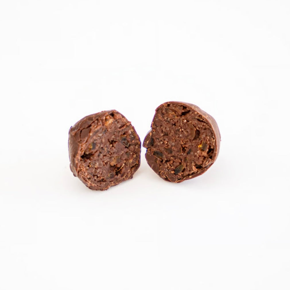 はっさくチョコは農薬も肥料も使わず栽培された愛媛県のはっさくをマーマレードにして、チョコと混ぜて丸めているもの。生チョコのように柔らかい食感が楽しめます。