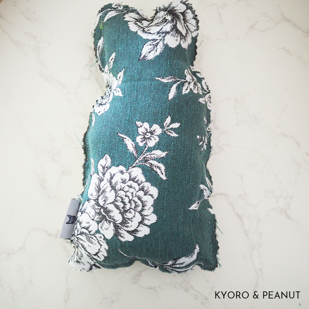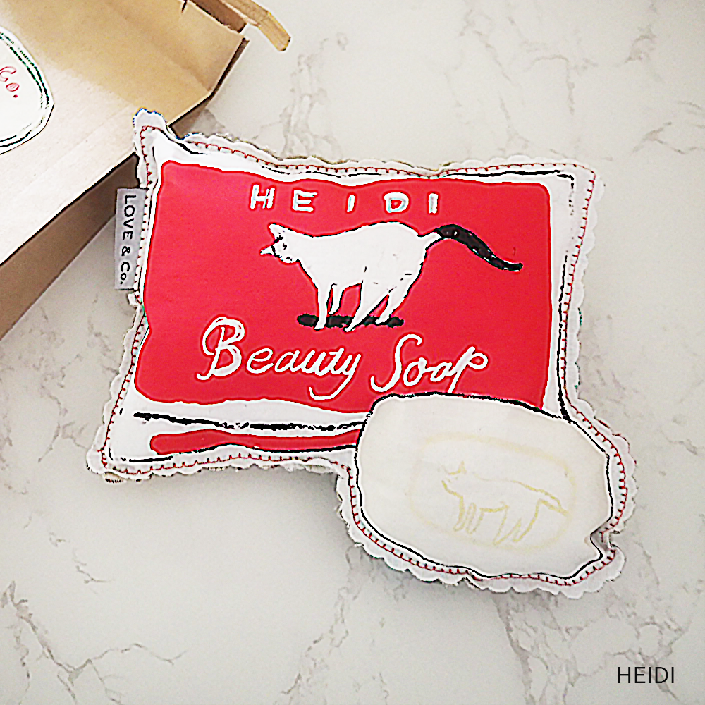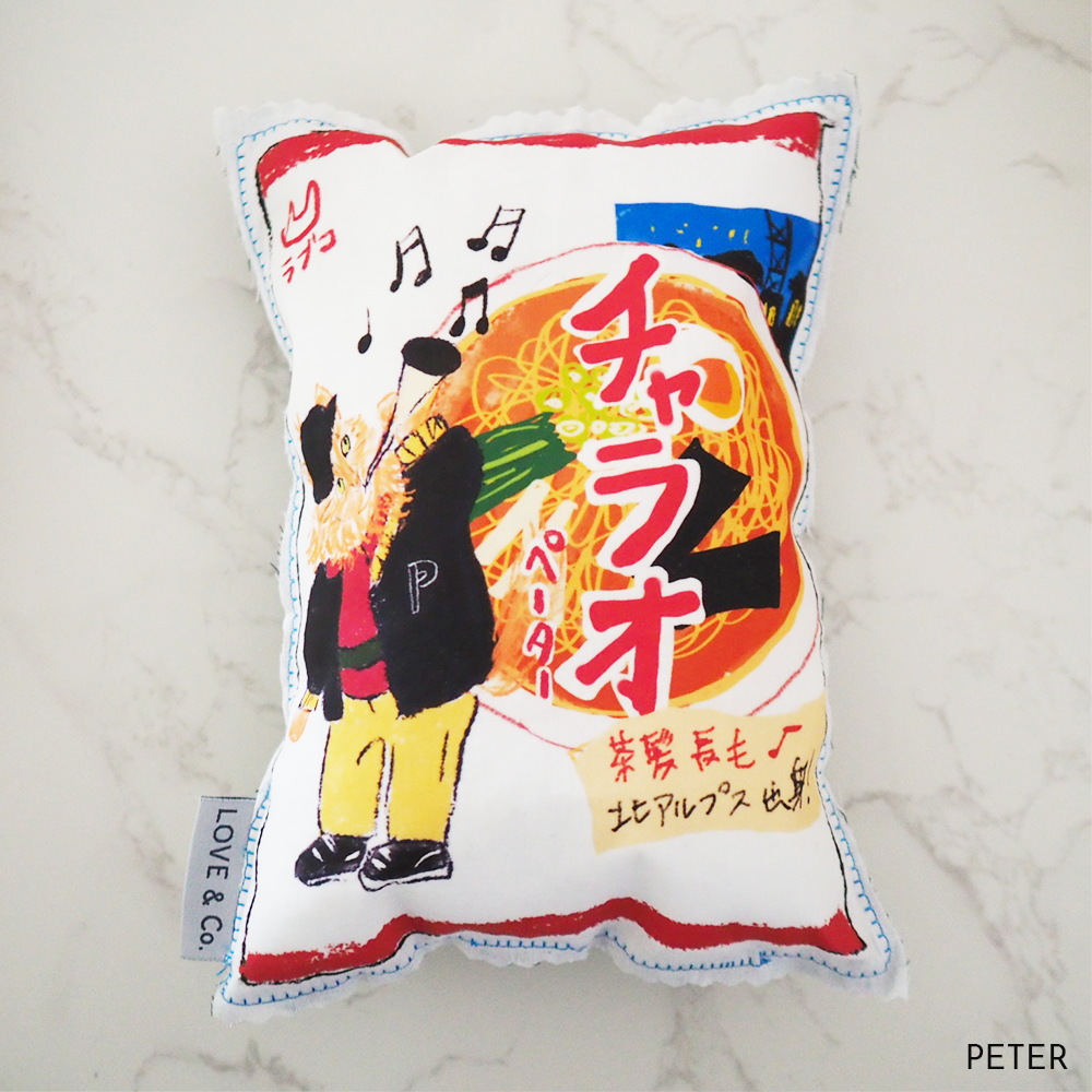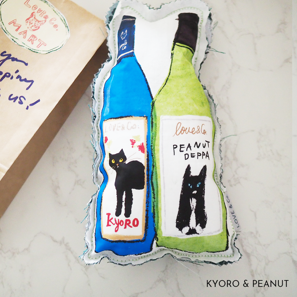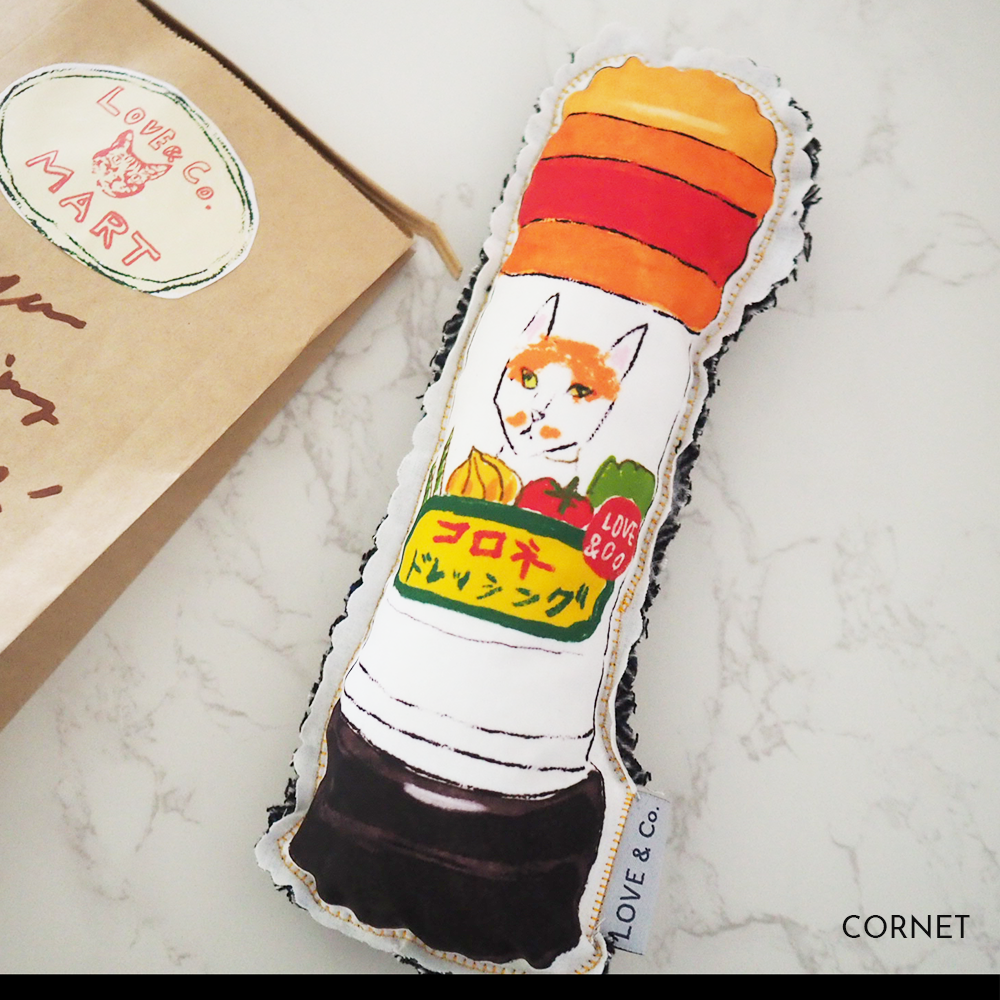 ラブコCATSがパッケージになった日用品をクッションにしてみました。