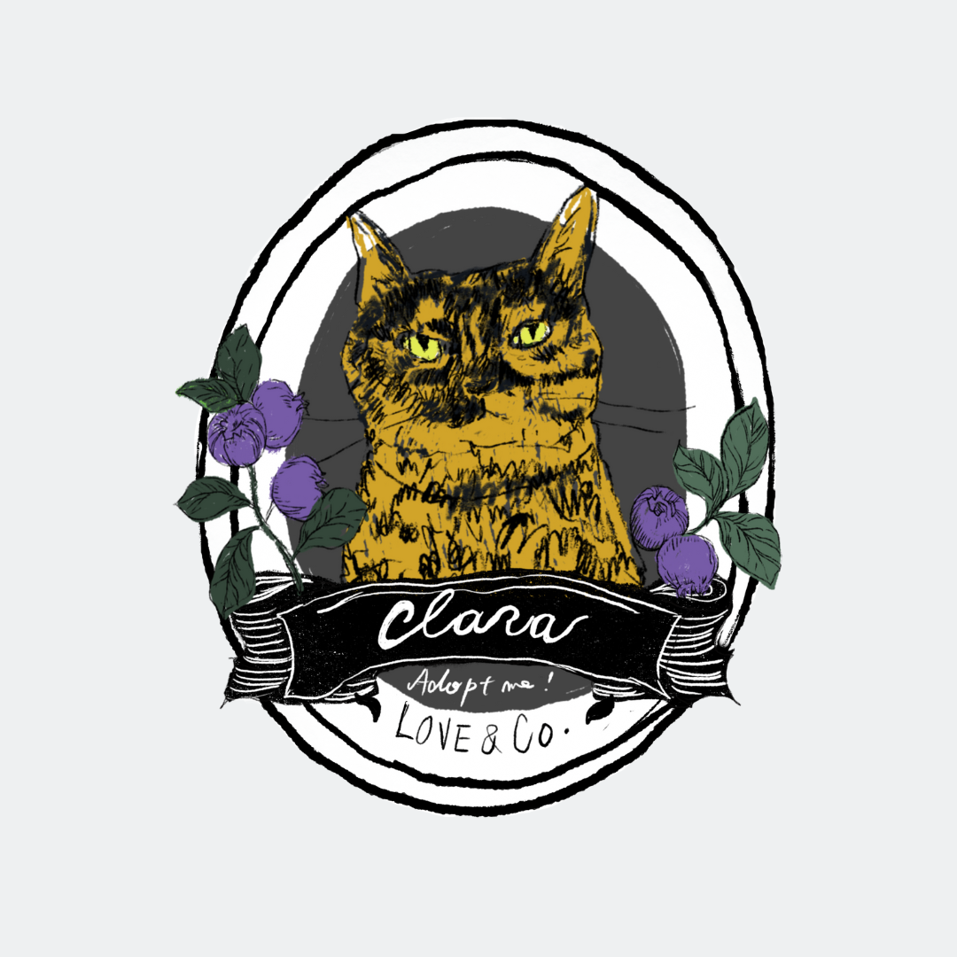 クララの落ち着いたまなざしとブルーベリーの深い青が響き合う、