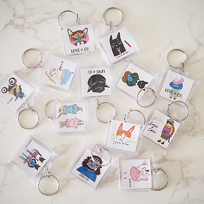 これまで描き溜めたイラストでパチパチキーホルダーを作りました。