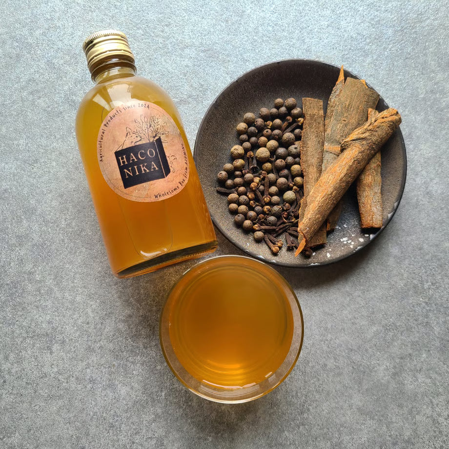 Haconicaのスパイスアップルジュースは作り手である工藤くんが長い時間をかけて作ったこだわりの一品。開発当初から試飲させていただいてましたが、何度も改良を重ねてアイスでもホットでも美味しくいただける絶品ジュースができました!