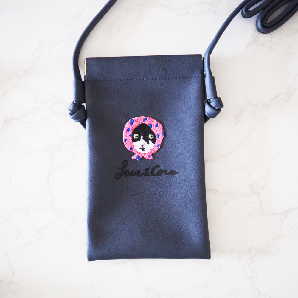 開口部はばね金具仕様でワンタッチで片手だけで開封できるスマホポーチはメガネケースにもなるし、ステーショナリーを入れてもGOOD!