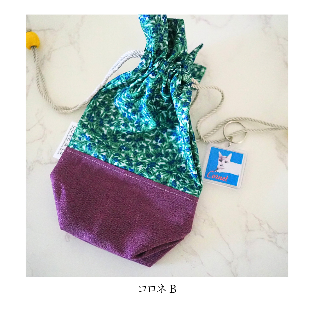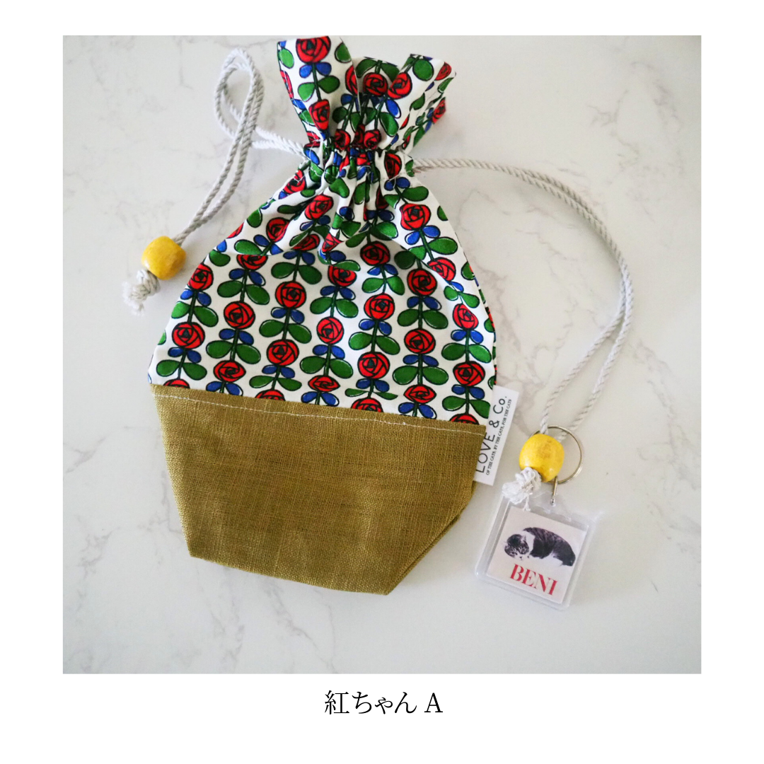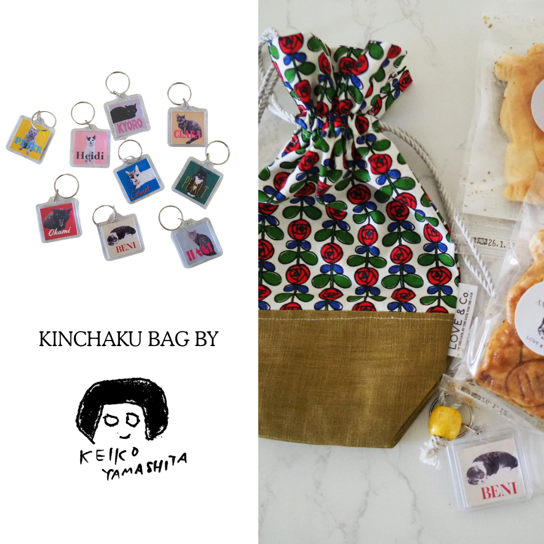 ケイコヤマシタのお手製巾着は同じものは一つもなく、全部一点モノ!